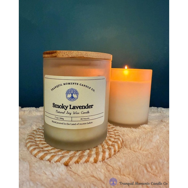 Tranquil Moments Candle Co. – 7 oz Smoky Lavender Scented Soy Candle 100% Natural Soy Wax | Aromatherapy | Eco-Friendly | 40-Hour Burn Time | Handmade in Small Batches