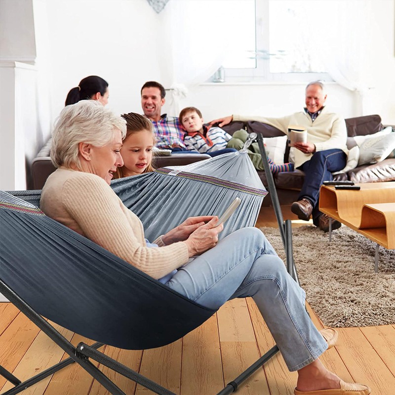 Tranquillo Double Hammock with Stand Included for 2 Persons/Foldable Hammock Stand 600 lbs Capacity Portable Case - Inhouse, Outdoor, Camping, Grey