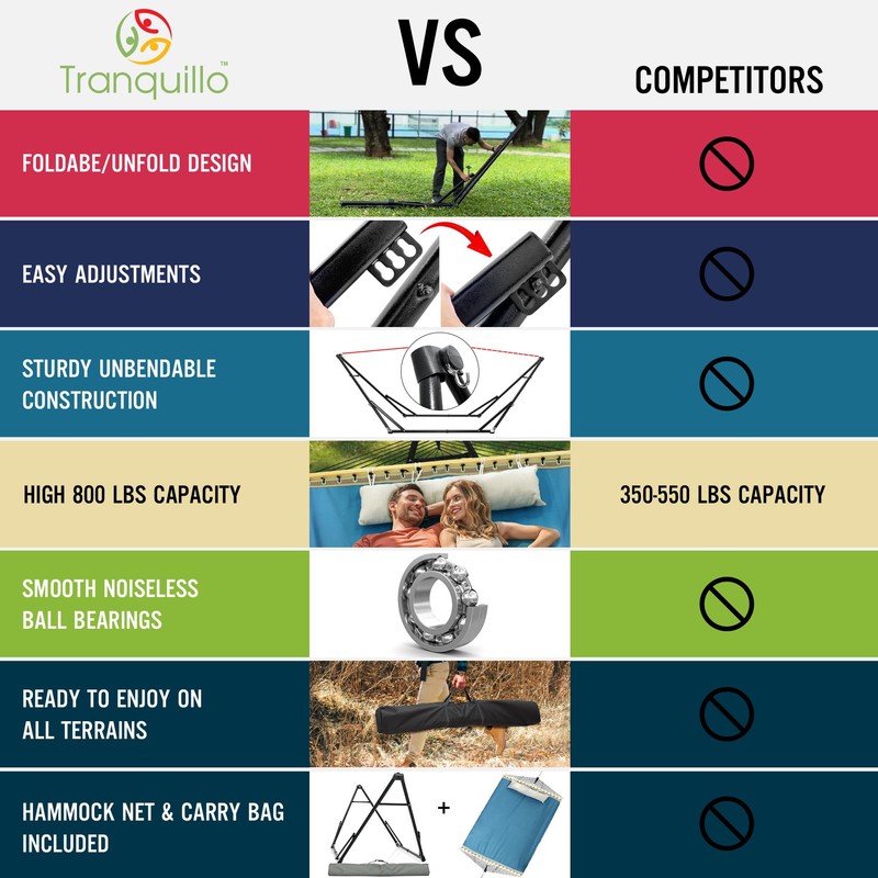 - PATENT-PENDING COLLAPSIBLE ADJUSTABLE NOTCH DESIGN: Offers maximal compatibility to cater all heights and preferences, offering endless customizations. Tranquillo Unity Hammock Set is not just a purchase; it's an investment in your wellbeing. Perfect for solo relaxation or sharing the joy with loved ones