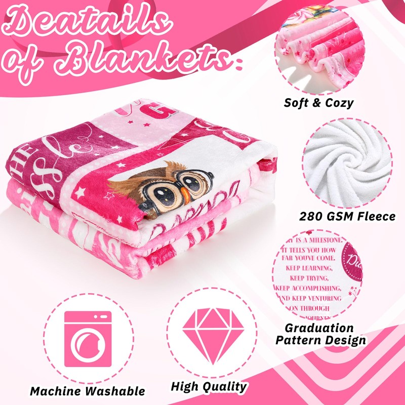 Tranqun Graduation Blanket, 2024 Graduation Gifts for Him Her Class of 2024 Graduation Blanket for 2024 High School Phd Bachelors Masters Degree Graduation Gifts, 60'' x 50'' (Pink and White)