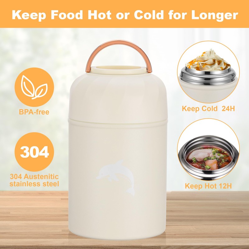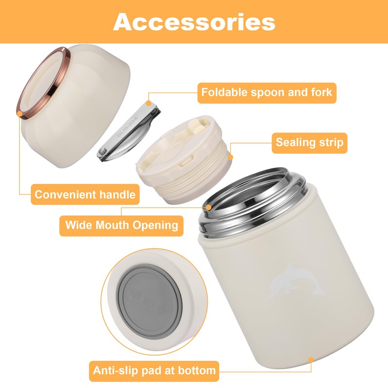 The thermal food container has a double-walled vacuum insulation design that can keep liquids hot/warm/cold for up to 6 hours or more. You can easily bring hot food (such as soup or other solid food) to the workplace or school without worrying about the temperature of the food.