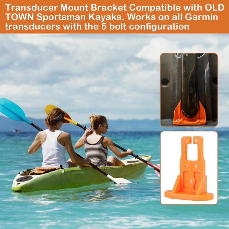 - 【Transducer Mount for Kayak】Transducer Mount Bracket Compatible with OLD TOWN Sportsman Kayaks. Works on all Garmin transducers with the 5 bolt configuration