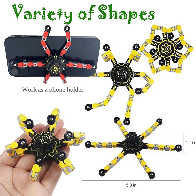 • 【Transformable Fidget Spinner】The package contains 10 pcs transformable chain robot fidget toys in 7 different styles, and it include 6pcs glow in the dark fidget spinners to meet your various needs.