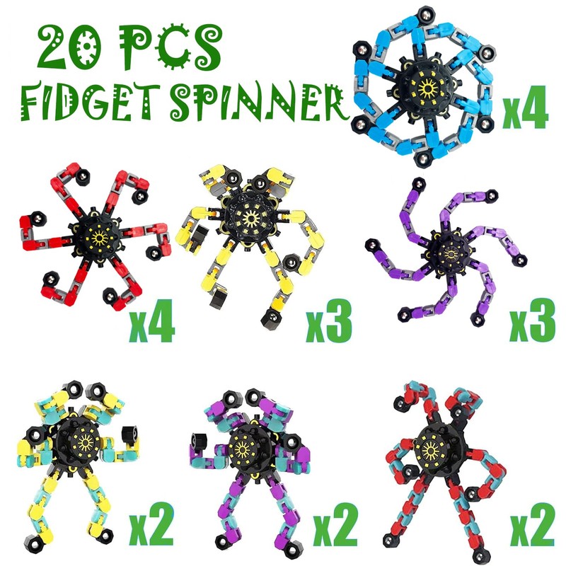 Transformable Fidget Spinner, Fidget Toys Bulk for Adults, Transformable Chain Robot Finger Toy DIY Deformation Robot Mechanical Spinners Stress Relief Fidget Toy for Teens Adults (20)