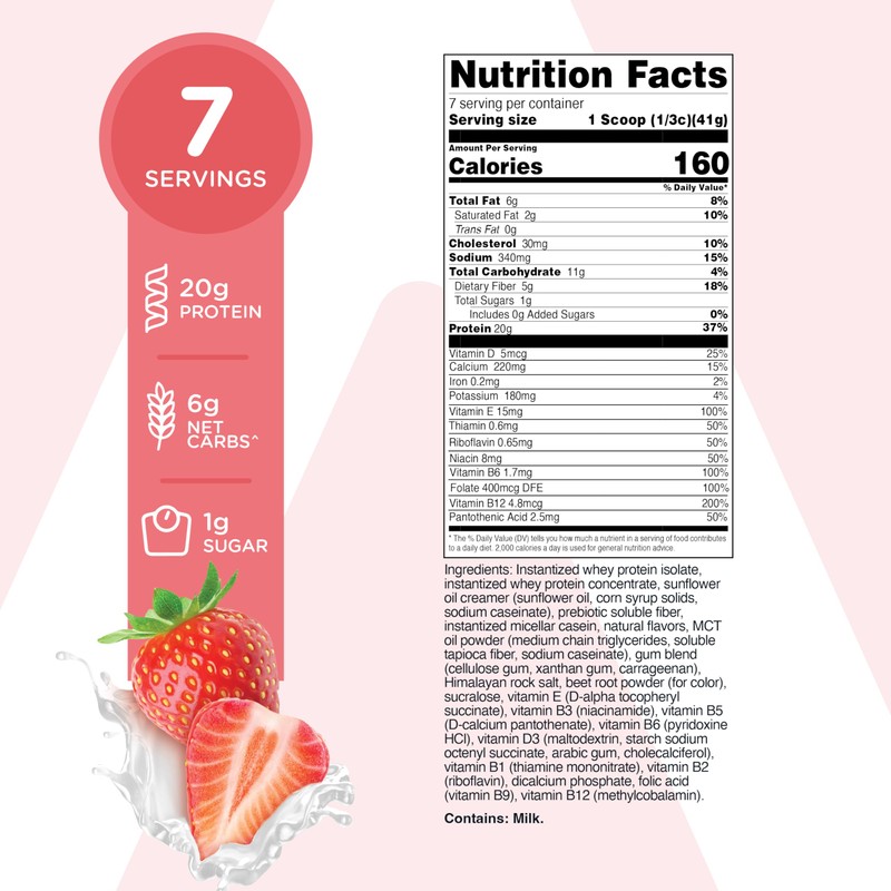 TransformHQ Meal Replacement Shake Powder 7 Servings (Strawberry & Cream) - Gluten Free, Non-GMO