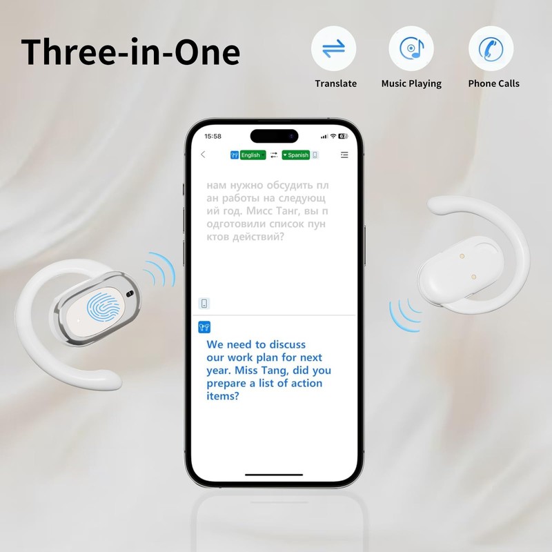 - All-in-One Design ai translation earbuds real time: Language translator headset Combines language best translator earbuds real time, music playback, and call functionality, offering convenience for work, travel, and everyday life. HD Sound Quality: Delivers crystal-clear sound quality for calls, music, and translations, ensuring a premium audio experience every time.
