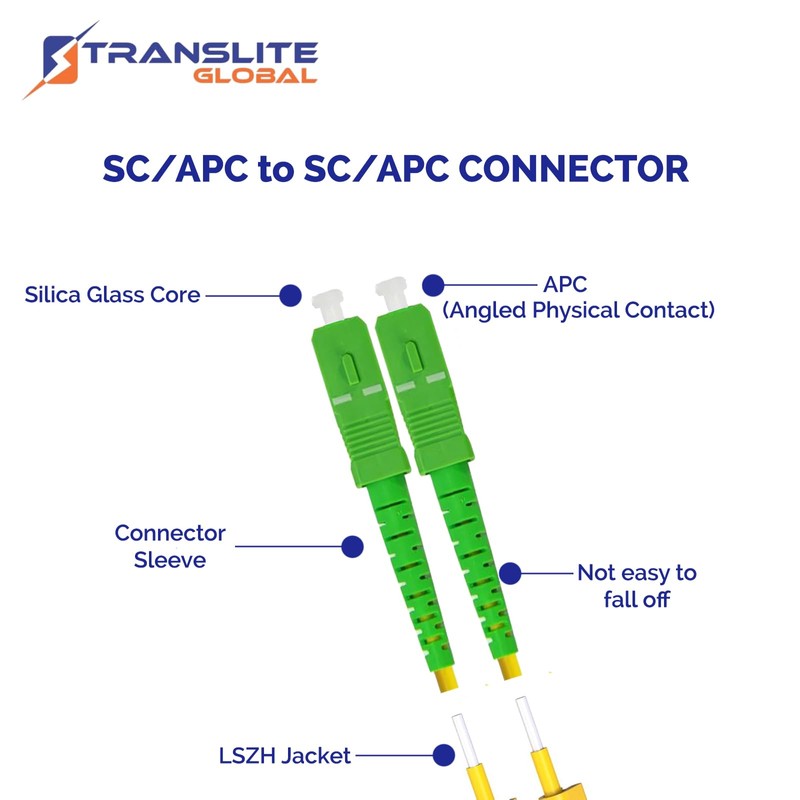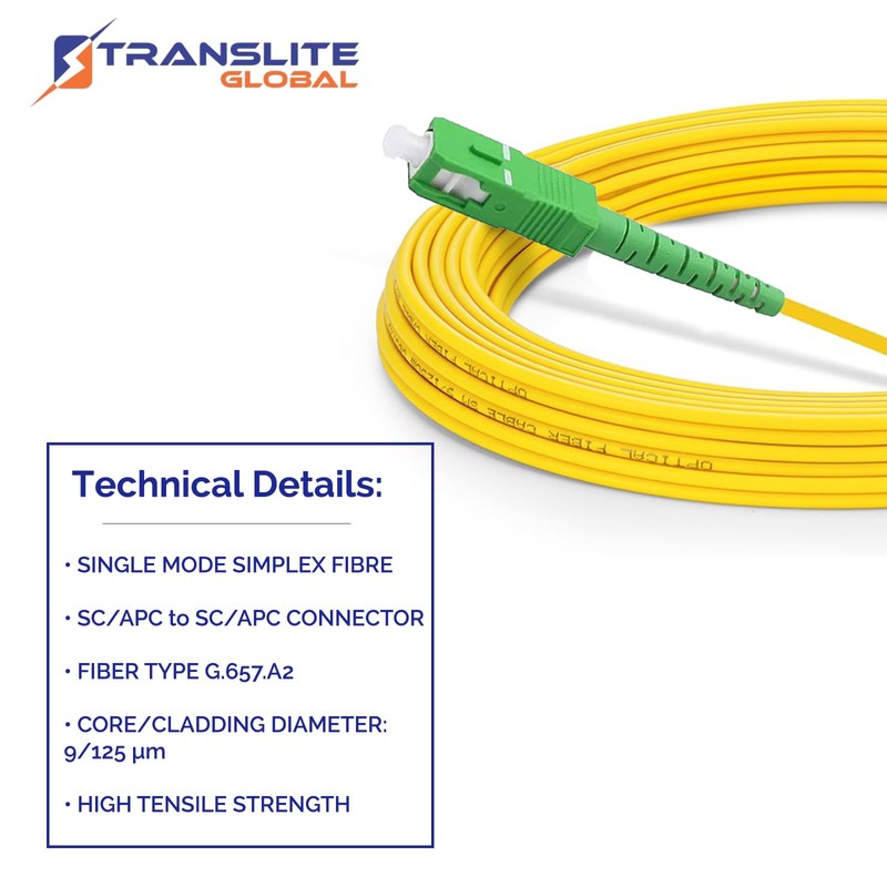 Translite Global Fiber Optic Patch Cable - Single Mode, Simplex SC-APC to SC-APC, High-Speed, Low-Loss Network Cable for Data Centers, Telecom, and Internet, Brand, 100ft (30m)