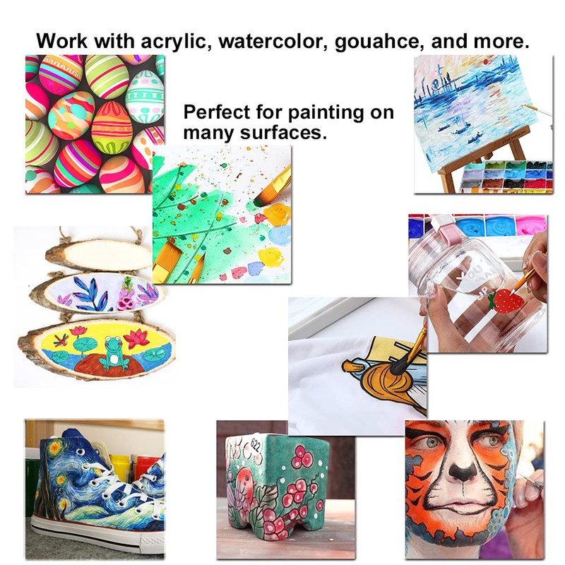 - These brushes are suitable for painting on all kinds of surface: canvas painting, body painting, rock painting, craft painting etc.