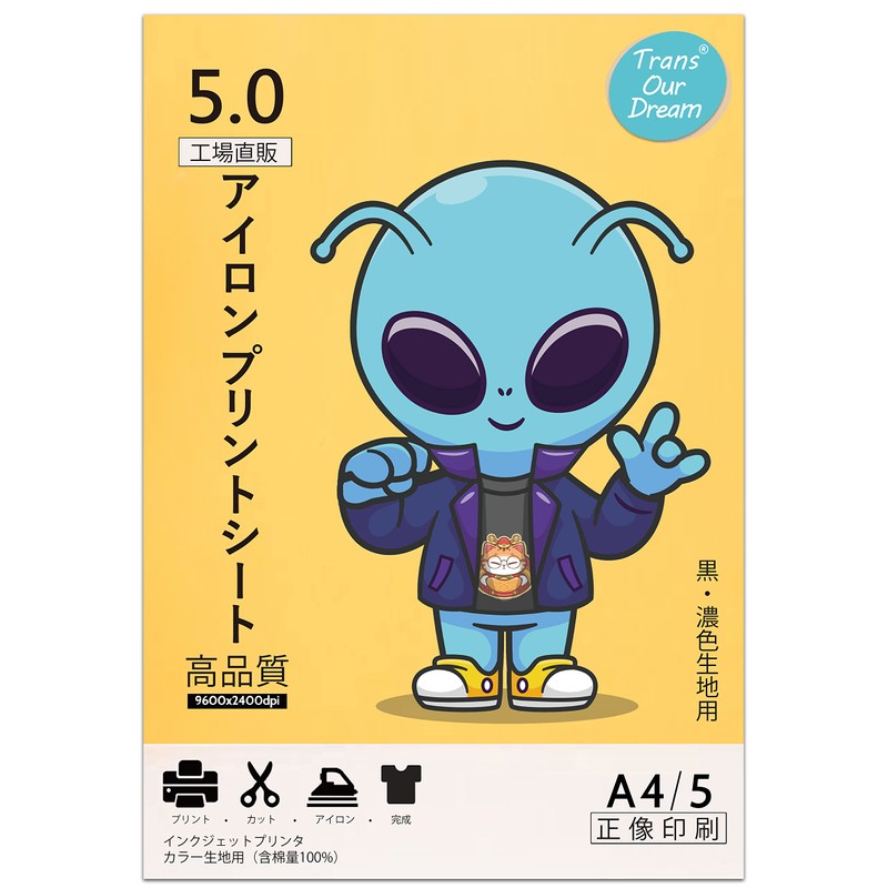 TransOurDream Genuine A4 5 Sheets Iron on Print Sheet Transfer Paper for Black and Dark Fabric Transfer Inkjet Printer