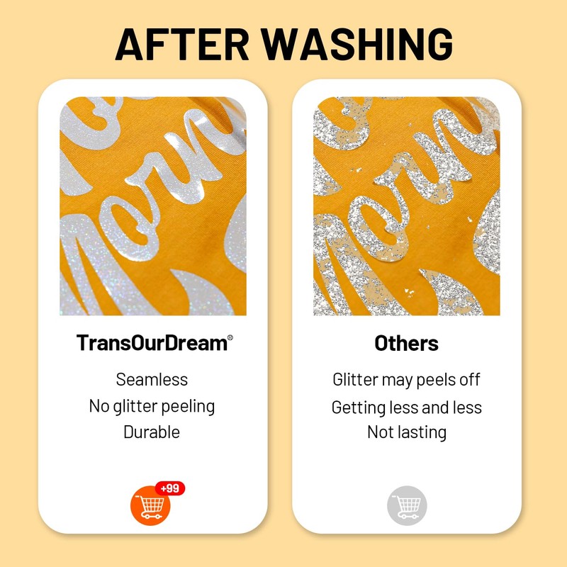 - đź’•WASHABLE & DURABLE: Benefit from the technology of the glossy glitter vinyl, the glitter will not peel off after washing, which greatly helps your design remain durable on the fabric. And it will looks as good as new even after multiple washes.