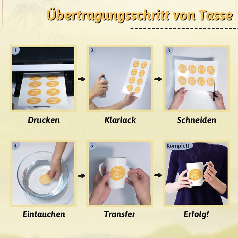 - 💕 WHO WE ARE We are a leading manufacturer with 20 years of experience in R&D, manufacturing and ODM (for many high quality global brands) in heat transfer paper, water slide film, etc.TransOurDream is one of our brands dedicated to providing high quality products for families and professional users.We can help you build your own brand and print your logo on the back of the transfer paper. .