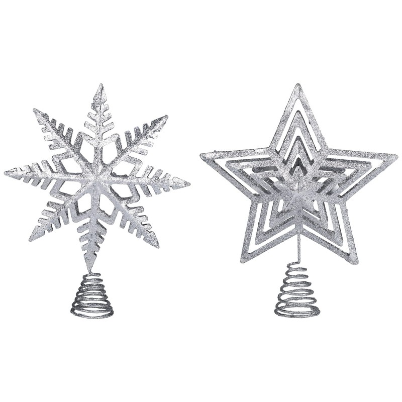 Transpac Metal Silver Glitz Tree Topper, Set of 2, Assortment