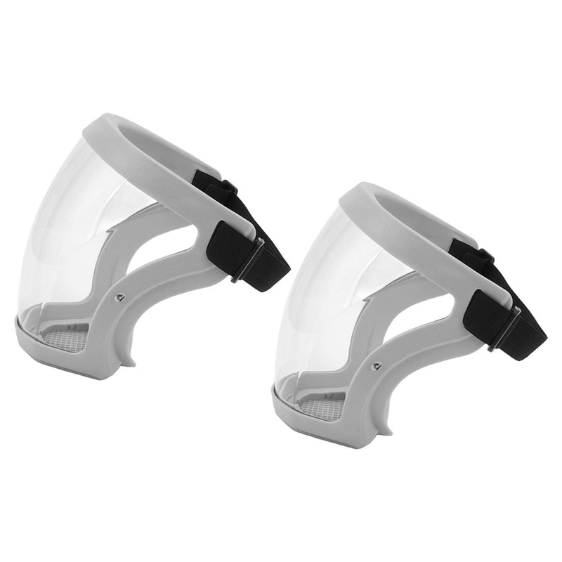 Transparent 2pcs Protective Face Cover, Reusable Dustproof Safety Shield with Filter Cotton Pads (Adult Grey White)