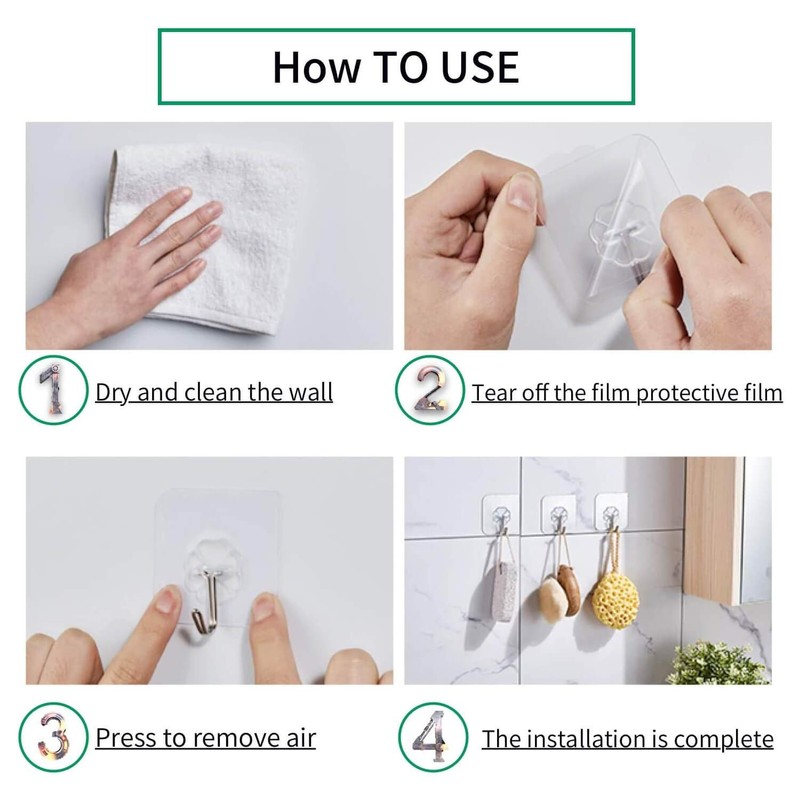 - Strong and Heavy Duty:The imported adhesive does have an ultra-strong viscosity. The load bearing capacity can be up to 20KG. They are strong and firm and can surely hold your accessories in place.