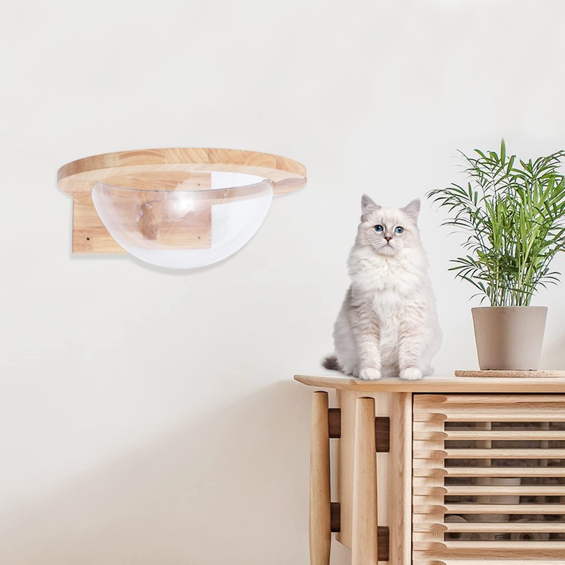 Transparent Cat Beds, Clear Capsule Cat Bed, Wall-Mounted Wooden Cat Space, Small Pets Bed, Cat Furniture, Cat Hammock Bed, Cat Wall Shelves for Sleeping and Resting