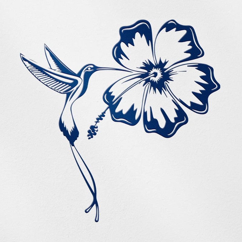 Transparent Decal Stickers of Hummingbird and Hibiscus Tattoo (Navy Blue) Premium Waterproof Vinyl Decal Stickers for Laptop Phone Accessory Helmet Car Window Mug Tuber Cup Door ANDSKUS603754AB080322