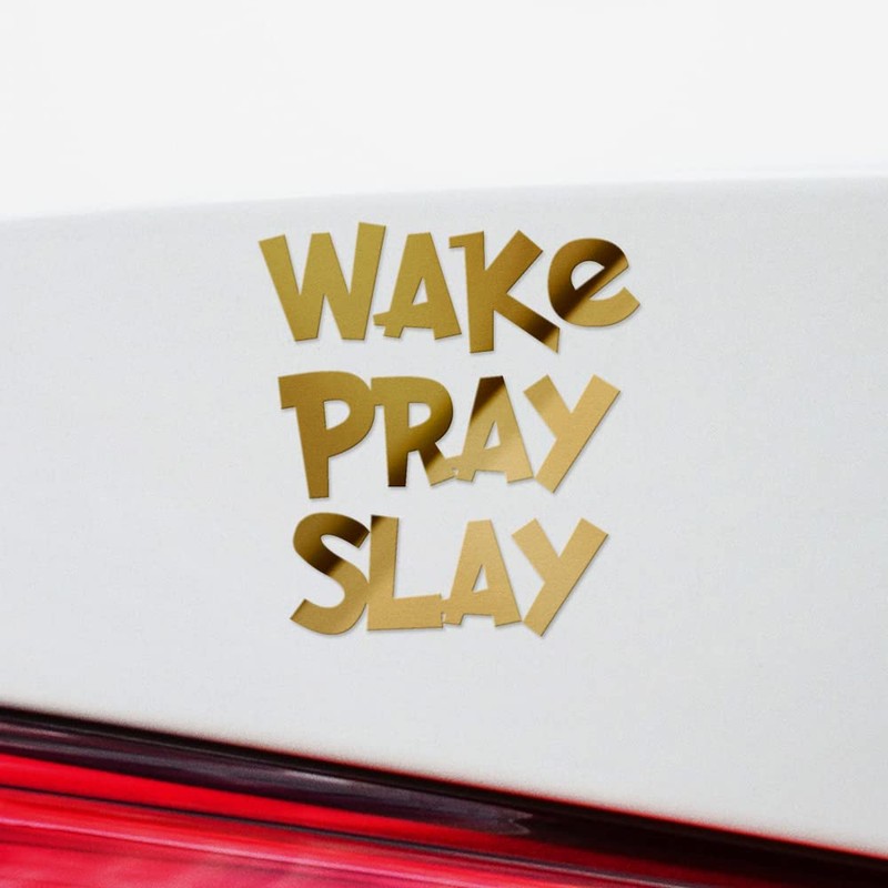 Transparent Decal Stickers of Wake, Pray, Slay (Metallic Gold) Premium Waterproof Vinyl Decal Stickers for Laptop Phone Accessory Helmet Car Window Mug Tuber Cup Door Wall Decor ANDSKUSf85636GO080922