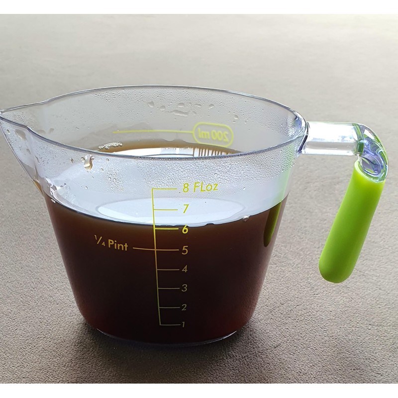 • Convenient to Use: Printed Measurements and Pouring Spout with soft multi colour grip handles. Clear construction with easy-to-read measurement markings eliminates the need to fill, check and adjust. The handles of the measuring beaker make it comfortable to hold, oval spout on the rim guarantees accuracy targeting without dripping, definitely no messy countertop.