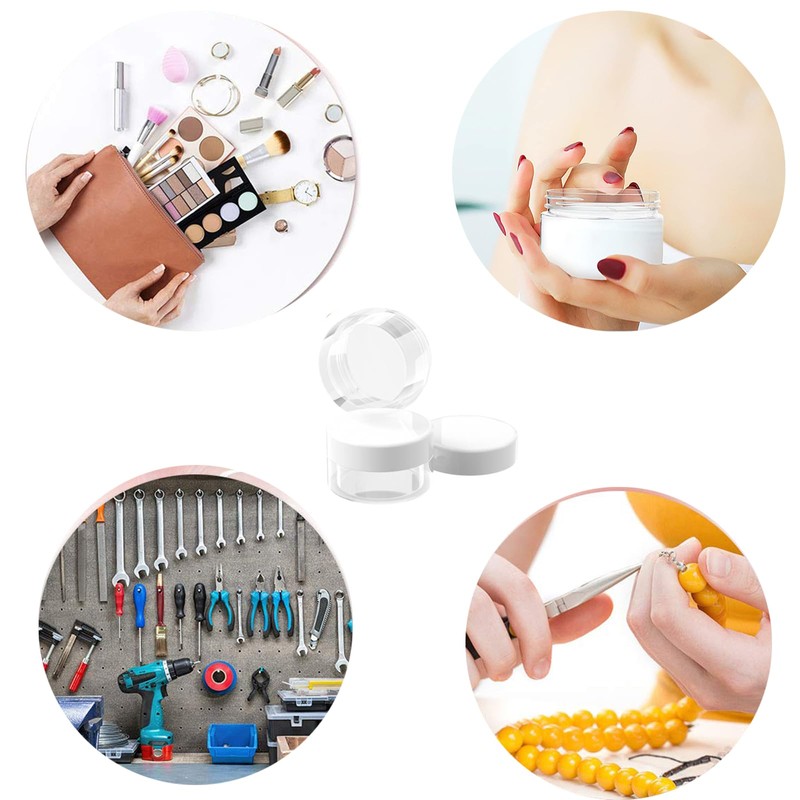 • Wide Applications The clear tins are suitable for storing a variety of items such as cosmetics, small beads, buttons, lip gloss, creams, ointments, powders, earrings and other small items. The cream jars are small and lightweight, which saves space. You can easily put it in your make-up bag or handbag and take it with you.