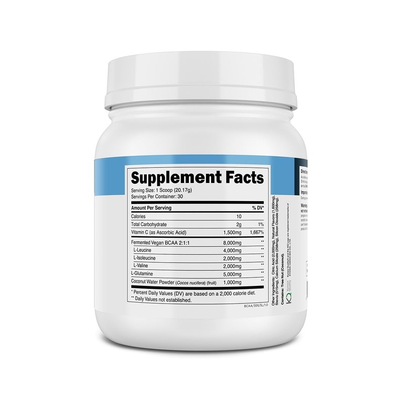 - Comprehensive Workout Support: Designed for pre-, intra-, and post-workout use, our BCAA powder includes 5,000 mg of L-glutamine, 1,500 mg of vitamin C, and 1,000 mg of coconut water powder. This synergistic formula promotes hydration, supports immune function, and decreases muscle damage, ensuring you stay at the top of your game.
