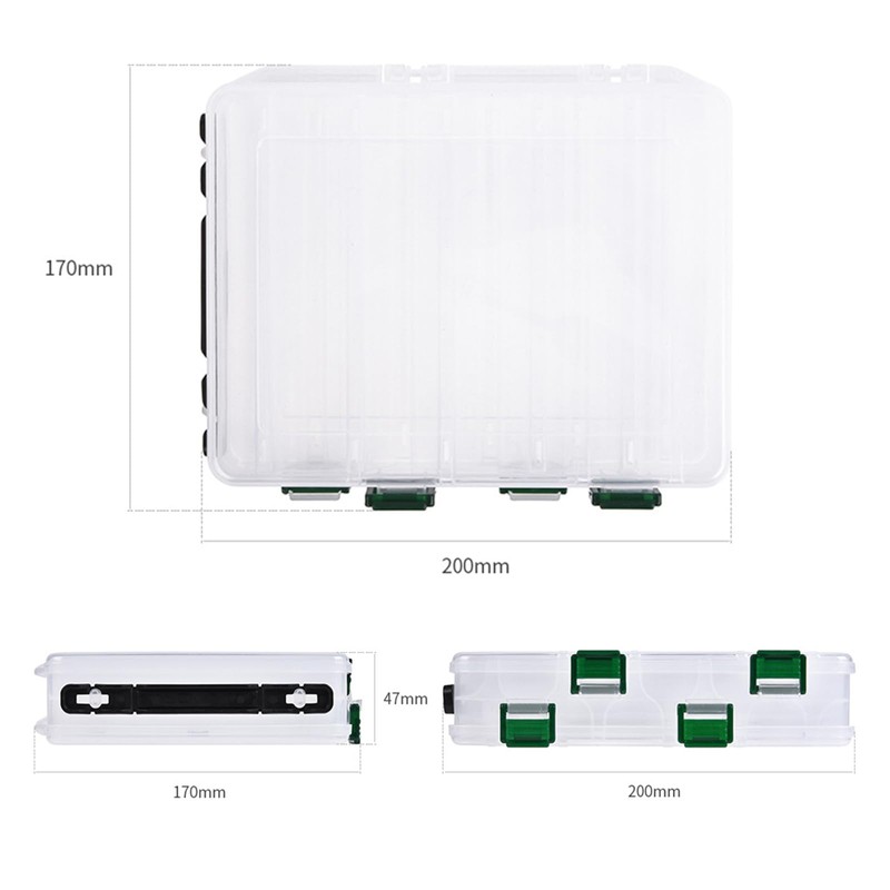The deep sea fishing box features a double layer double sided design with multiple built-in independent compartments to meet the requirements of classified storage. It is suitable for storing a variety of fishing accessories and puts an end to mess.