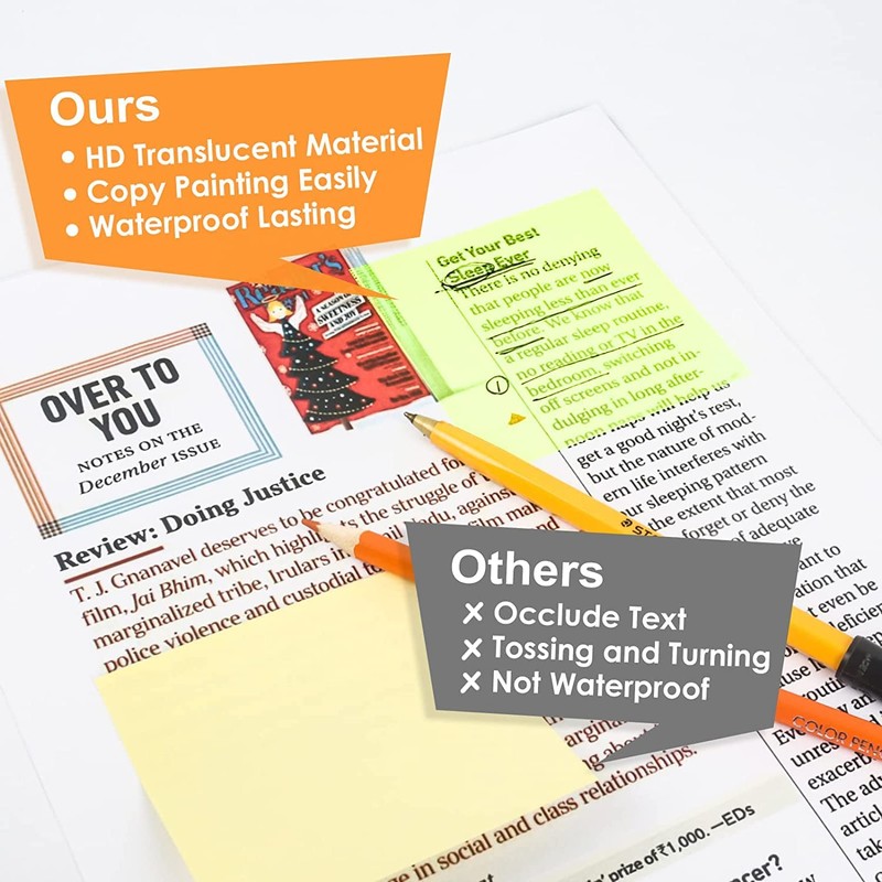 - 📖【Proper Adhesion】: The transparent sticky notes have strong adhesive on the back for easy sticking where you want. Easy to remove and doesn't leave any traces of glue.