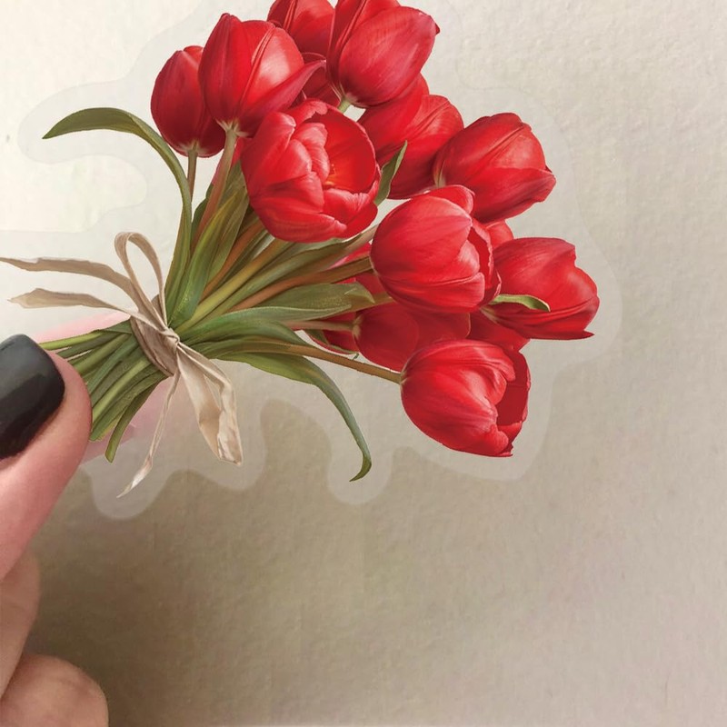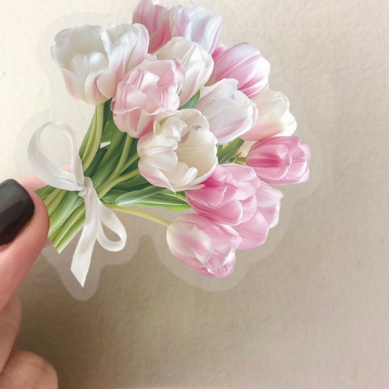 Transparent Tulip Stickers - 50PCS Fashionable Clear PET Flower Stickers for Water Bottles, Scrapbooking, Journaling (DIY Craft & Home Decor) - Floral Aesthetic Waterproof Vinyl Decals