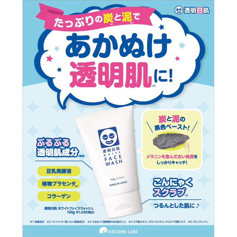 Transparent White Skin White Face Wash, Dull due to Old Exfoliating Skin, Pores, Transparent Skin, Mud, Charcoal, Face Wash, 3.5 oz (100 g), 3.5 oz (100 g) (x 1)