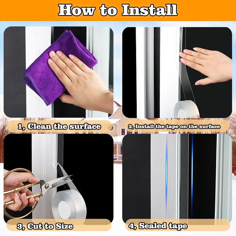 - Strong Adhesive but surface safe adesive:Transparent weather sealing tape is made of high-quality, weather-resistant materials that can withstand extreme temperatures, moisture, and DIY repair to sealing on windows,doors. Sticks strongly while being residue-free, removable and surface-safe.