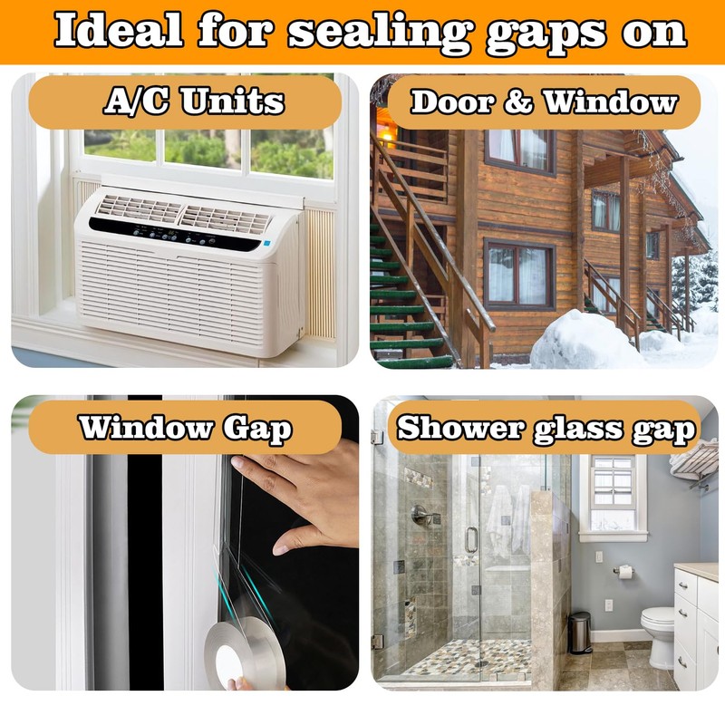 - Wide Application:window sealing tape can be cut and designed freely, suitable for sealing gaps and cracks of various sizes on windows, doors, kitchen cabinets, bathrooms, basements, Bathtub, Toilet, Shower, Sink, with Sealing Tool, car Door Edge Guard Door Sill Protector etc.
