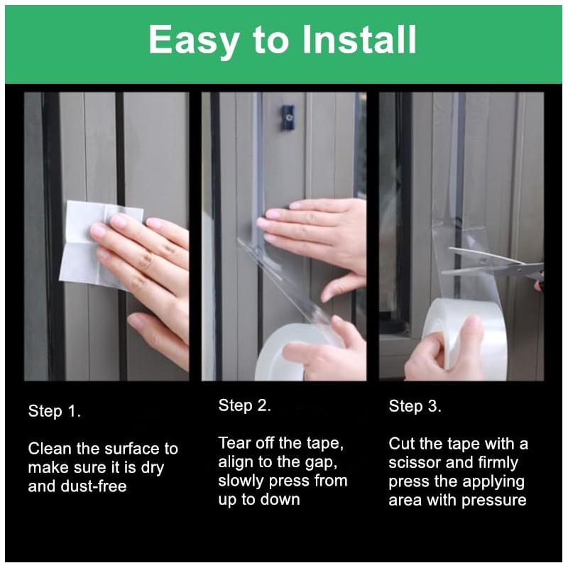 - 【Multi-Purpose Sealing Tape】Our window weather draft stopper tape is suitable for sealing gaps of frameless sliding doors, glass doors, plastic-steel windows and aluminum windows, closet door, threshold and cracks of various sizes on windows, doors, kitchen cabinets, bathrooms, basements, bathtub, toilet, etc.