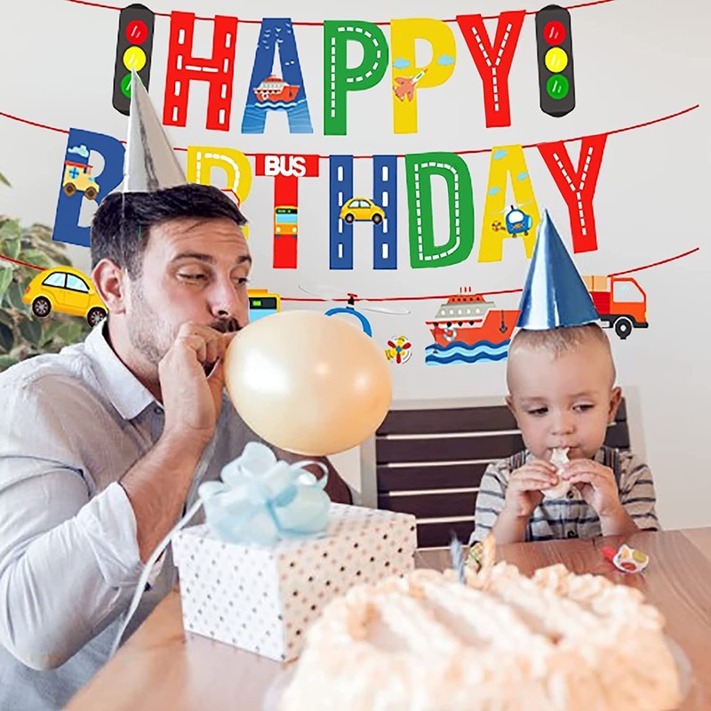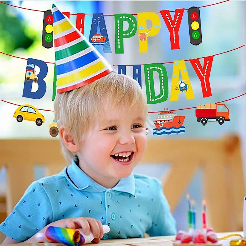 Transportation Happy Birthday Banners Car Bus Train Plane Ship Helicopter Traffic Light Photo Props Garland for Kids Birthday Party Baby Shower Decoration Supplies