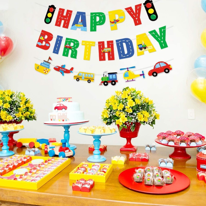 - 【 Vibrant Color & Eye-Catching Design】: The cute transportations are perfectly designed in the colorful letters. The unique design and mix colors of the letters also add an extra touch for your transportation theme birthday party