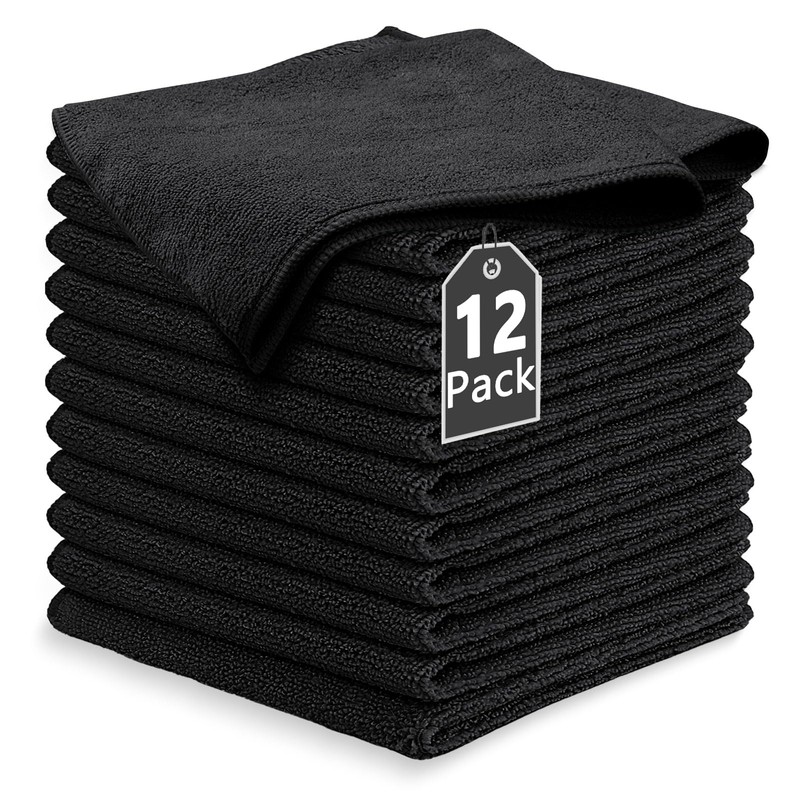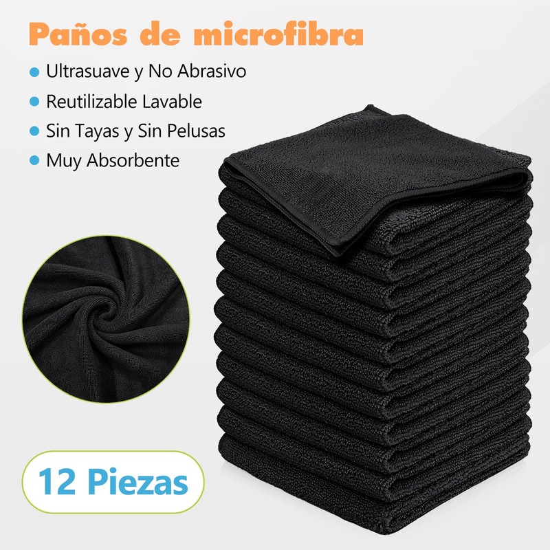 Trapos de Cocina, Paños de Microfibra 12PCS, Cleaning Cloth 40 x 40 cm, Toallas de Microfibra Limpieza, Súper Absorbente, Lavable y Reutilizable, Trapo Microfibras para Cocina、Automóvil、Vidrios-Negro