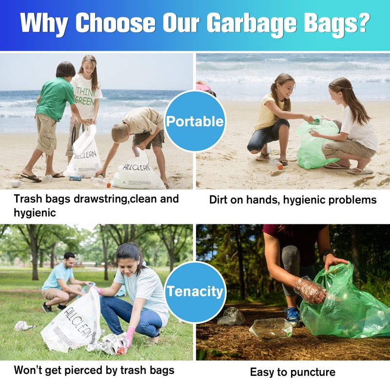 ALLCLEANbags garbage bags help you to easily view and identify what kind of contents are contained in the drawstring garbage bags,solve all garbage problems in your kitchen, is a good helper in your life. These Multipurpose Trash bags are STRONG BAGS, easy to open, easy to tear apart, easy to put into trash containers, Do not tear, do not break when tie. can conceal odors well after tying shut. it does have very good staying power even once the bag is full.