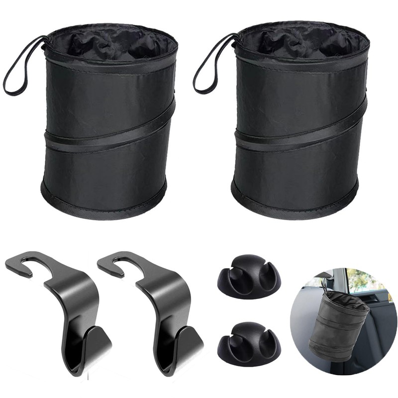 - Package includes: 2 X Foldable car trash can,2 X Seat Headrest Hooks,2 X Cable Clips