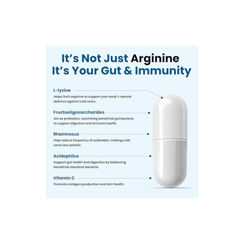 Tratamiento de lisina para el herpes labial con preprobióticos y VIT C | Suministro de 1 mes | Cápsulas de lisina supercargadas con Rhamnosus y Acidophilus para aliviar el herpes labial, la piel + la