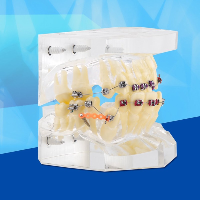 Este modelo de diente explica las irregularidades de los dientes y cómo funciona la ortodoncia. Por lo general, se usa en las escuelas de odontología en programas educativos, demostraciones y estudios de estudiantes. Este modelo también sería una gran herramienta para que los ortodoncistas se comuniquen con los pacientes, o para el uso de educación dental para todas las edades en las lecciones de higiene bucal escolar.