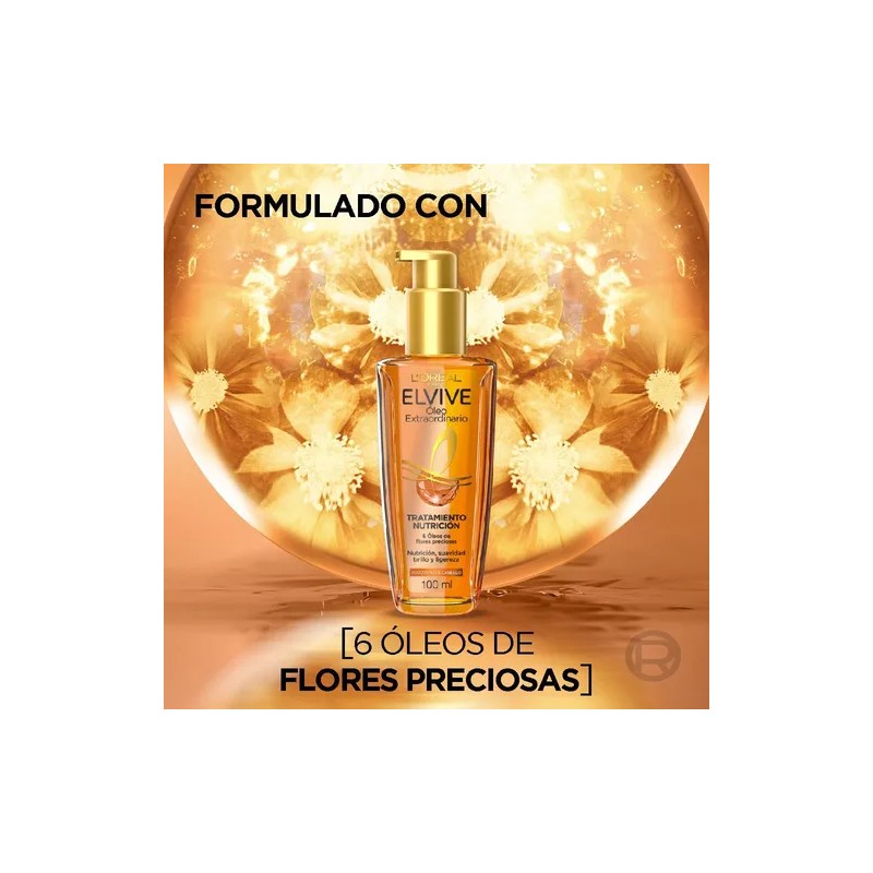 Aceite Capilar L'oréal Paris Elvive De Óleo Extraordinario 100ml' es un tratamiento multiusos enriquecido con 6 Óleos de Flores Preciosas. Este producto ofrece: