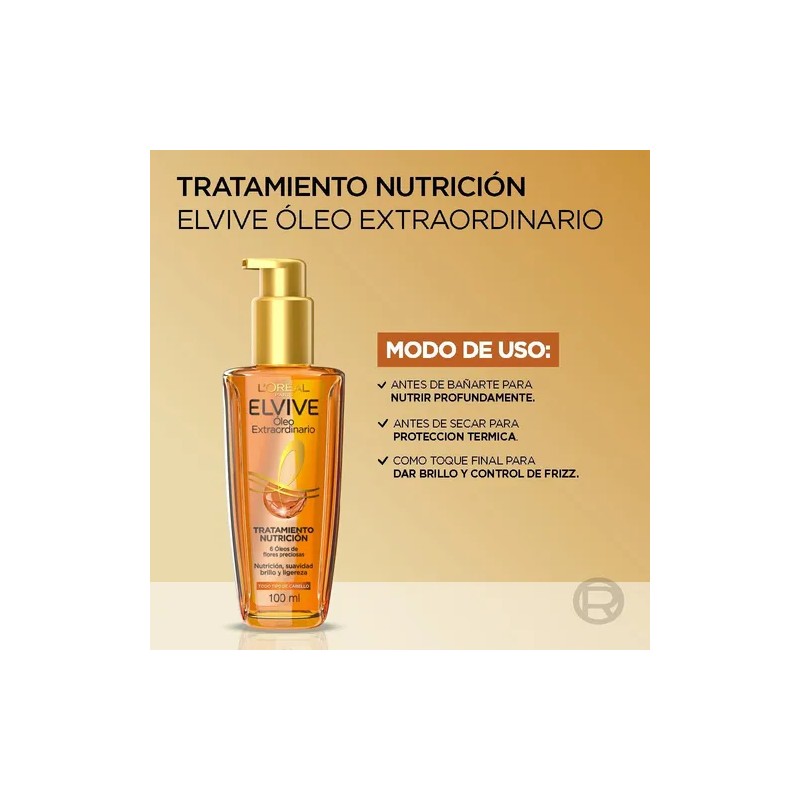5. Para un cuidado completo, se recomienda utilizar junto con el shampoo, acondicionador y tratamiento en óleo de Óleo Extraordinario de Elvive L'Oréal Paris.