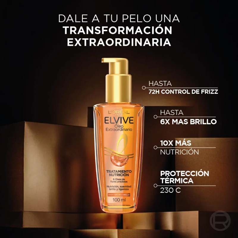 Tratamiento en Aceite Elvive Óleo Extraordinario pelo más suave y con brillo intenso con 6 óleos de flores preciosas, 100 ml de L'Óreal Paris