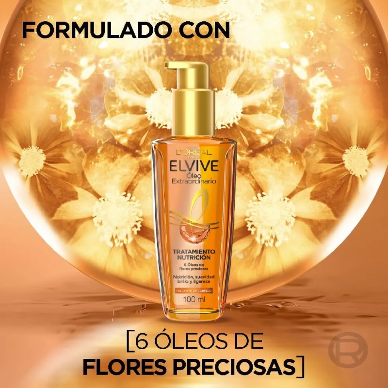 Aceite Capilar L'oréal Paris Elvive De Óleo Extraordinario 100ml' es un tratamiento multiusos enriquecido con 6 Óleos de Flores Preciosas. Este producto ofrece: