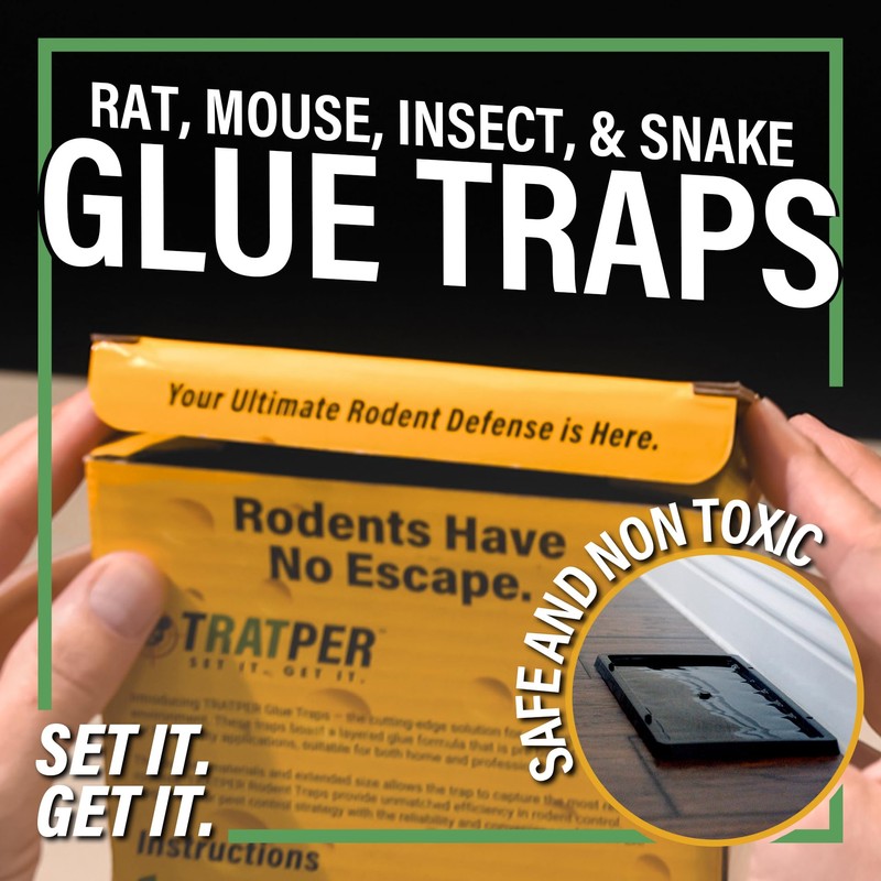 • Versatile & Multi-Purpose C Our glue traps are ideal for catching not just rodents but also other pests and insects. Place in commercial or industrial buildings, hospitals, residences, restaurants, attics and much more. For added advantage, use Tratper glue traps in conjunction with the Tratper Original Snap Traps.