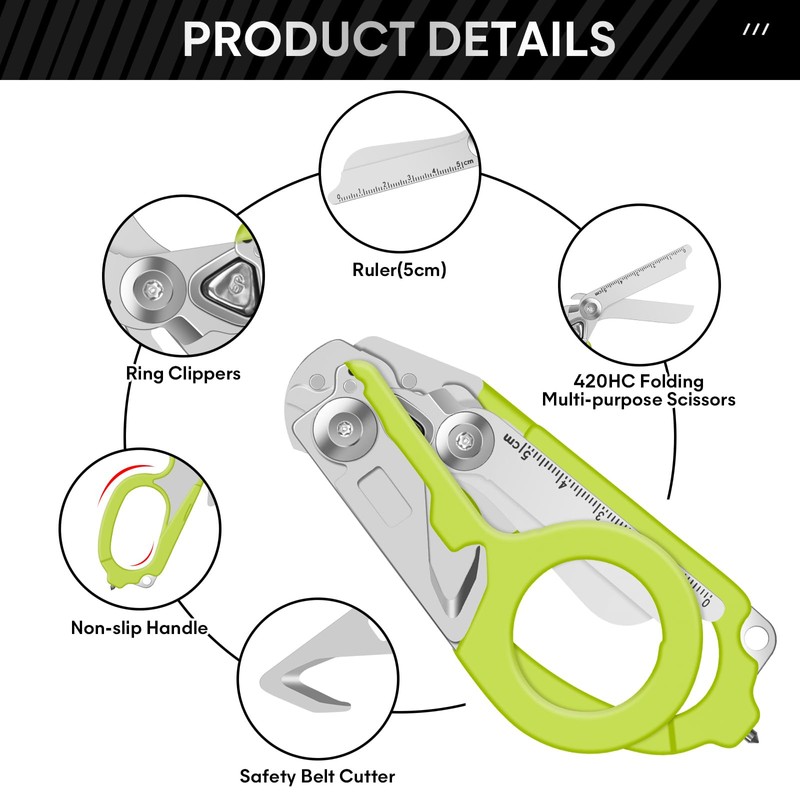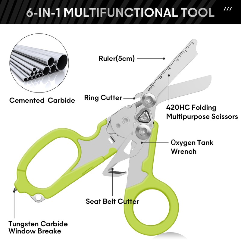 - MULTIFUNCTION:shears come with 6 essential tools, including folding emergency shears, ring knife, ruler, band cutter, carbide glass breaker and oxygen bottle wrench, trauma shears with scale for easy measurement, saving you time to measure things