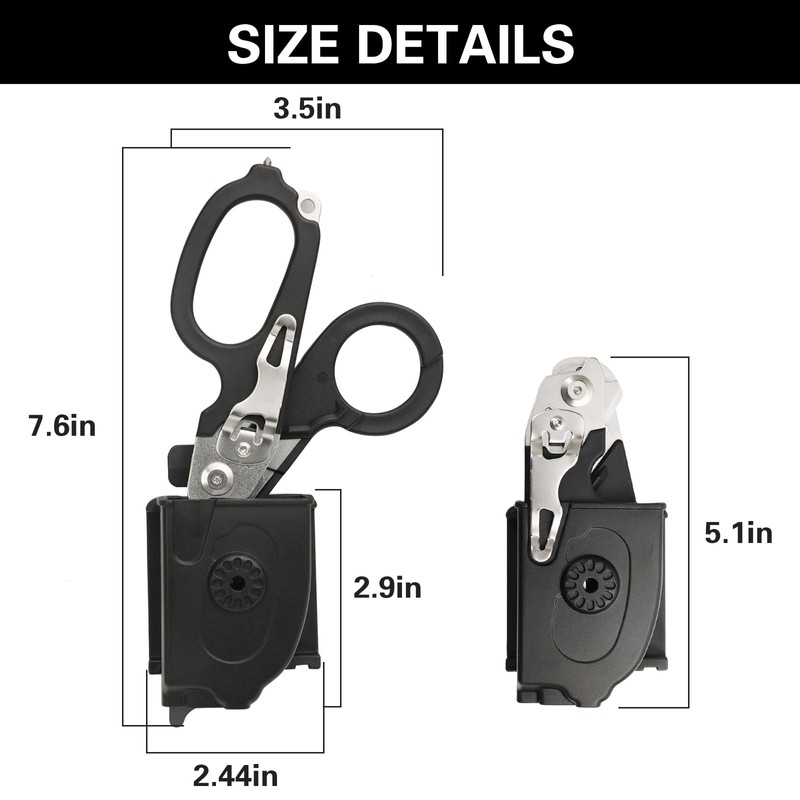 - Compact and powerful: This trauma clipper is lightweight, small in size, and easy to carry and store. The tool is carefully crafted according to the opinions of emergency professionals and designed for easy carrying; After putting the scissors into the leather case, they will lock, allowing you to buckle them upside down on the belt for quick access