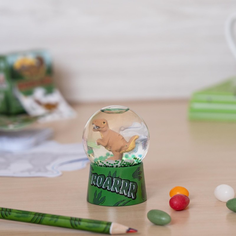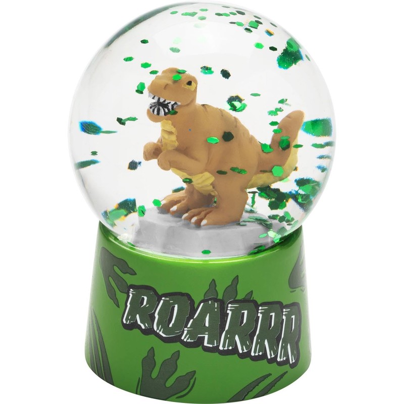 - TRAUMKUGEL DINO: Die zauberhafte Schneekugel zum Schütteln besteht aus bruchsicherem Acryl und Polyresin und ist mit raffiniertem Glitter gefüllt, der beim Schütteln eine schimmernde Traumwelt entstehen lässt. Höhe 6,5 cm, Motiv „Dinosaurier“, passend als Deko für das Kinderzimmer.