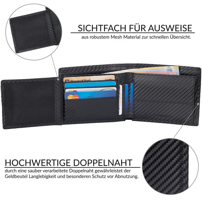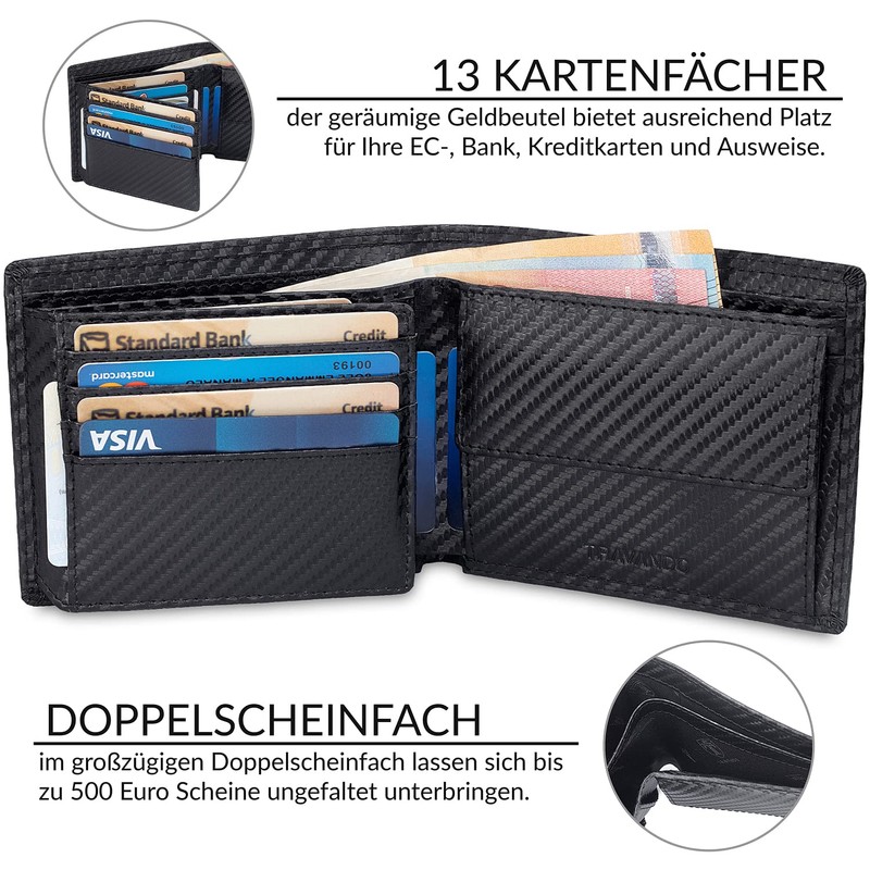 TRAVANDO Men's Wallet Large TÜV RFID Certified Wallet with 13 Card Slots Men's Wallet with Coin Compartment Oslo Wallet Men's Wallet for Men, carbon, classic wallet men