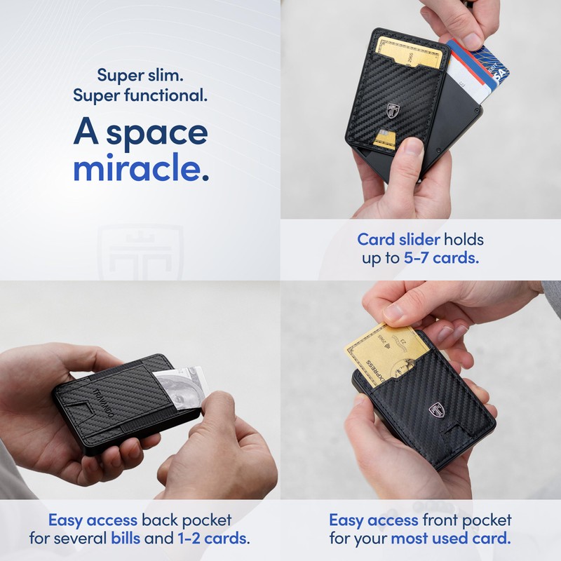 • ???????? ?????? ?? ???? ????? - The patented SWYPE mechanism of this men's wallet pops out your cards with only one movement, enabling you to see all your cards at a glance and find your needed card instantly. The attached carbon leather front pocket of this wallet allows you to push out the most-used card quickly. No more fumbling around!