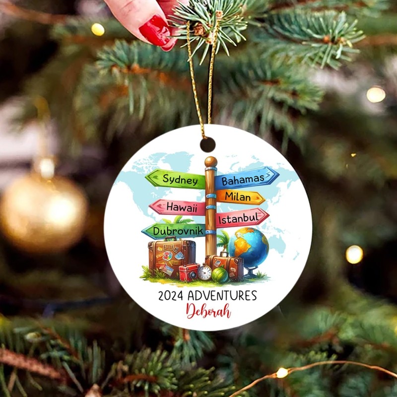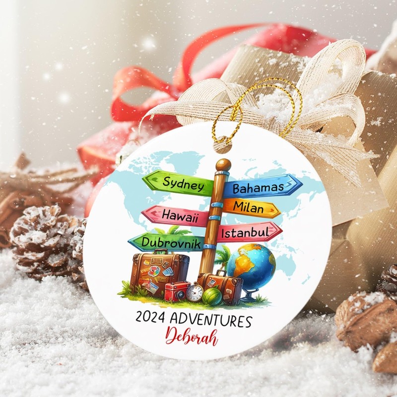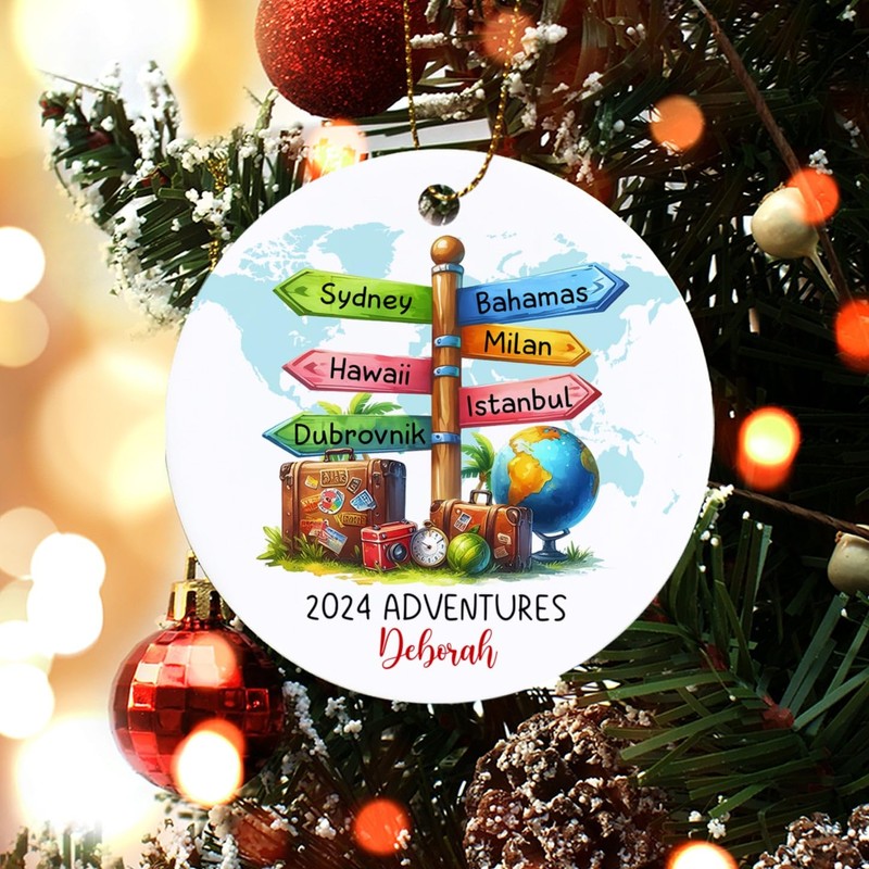 Travel Adventure Christmas Ornament Gift for Friends Bestie, Custom Text Location Name Traveller Xmas Keepsake Ornament, My Adventure Awaits Christmas Ornament 2024, Personalized Travel Ornament Xmas