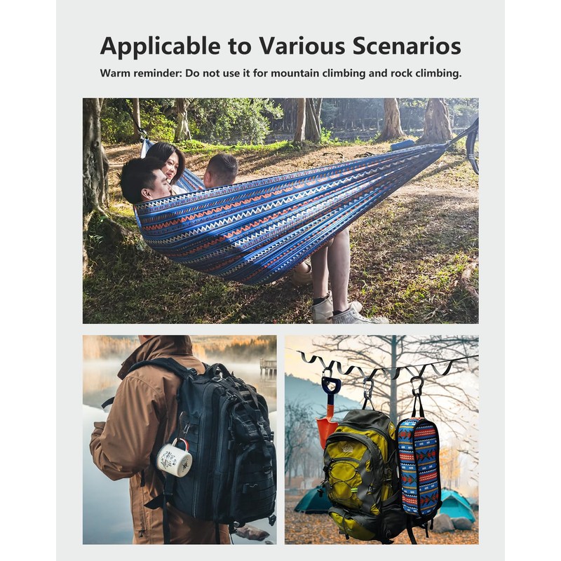 - ⛺【Unique Design】Travel Bird upgraded double-door carabiners feature a strong elastic steel wire door, allowing for easy one-handed operation. The stable closure ensures that the webbing remains securely in place, and the multi-purpose design enables you to carry more items.